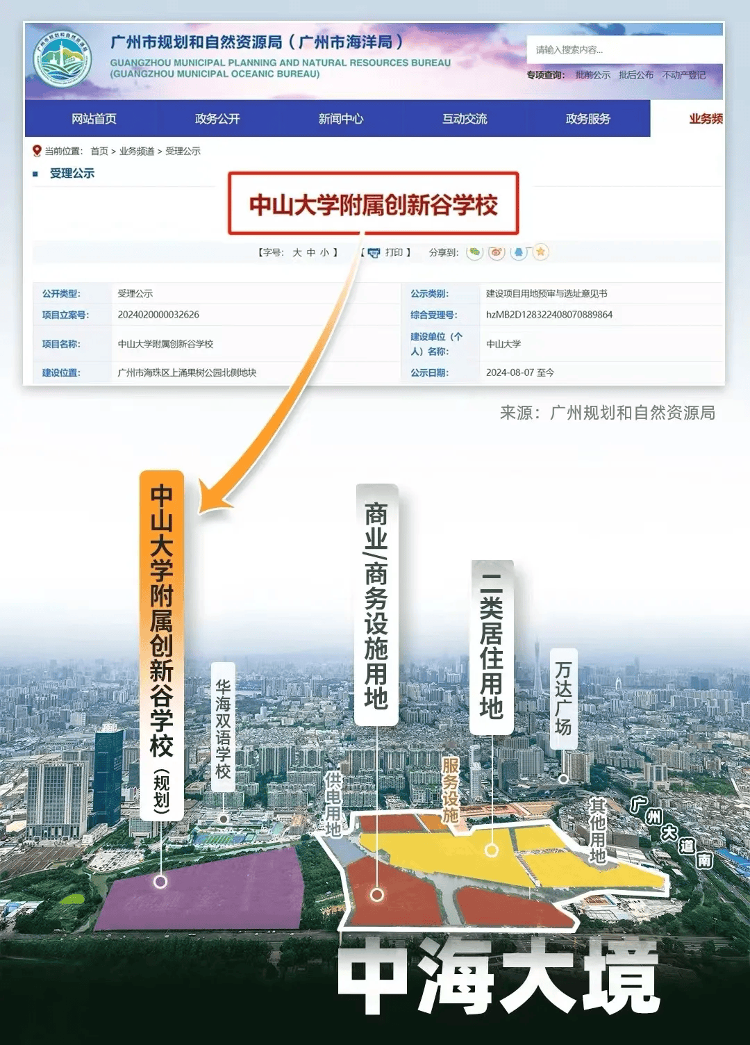 这所学校的到来,对整个片区有着里程碑的意义。首先,和很多合作办学的挂牌名校不一样,中大附创新谷学校的建设单位是中山大学,这意味着该校是由中大自主管理办学的,教学理念、方案将和目前的中大附相一致,教学质量有充分保障。其次,这所学校的规划传闻已经持续了6年,无数家长梦寐以求,如今正式公示受理,尘埃落定,让家长们的教育焦虑得到彻底缓解。最后,海珠中部一带本就缺优质初中,如今规划包括72班完全中学+18班小学的巨无霸体量,将直接补齐海珠的教育王牌。